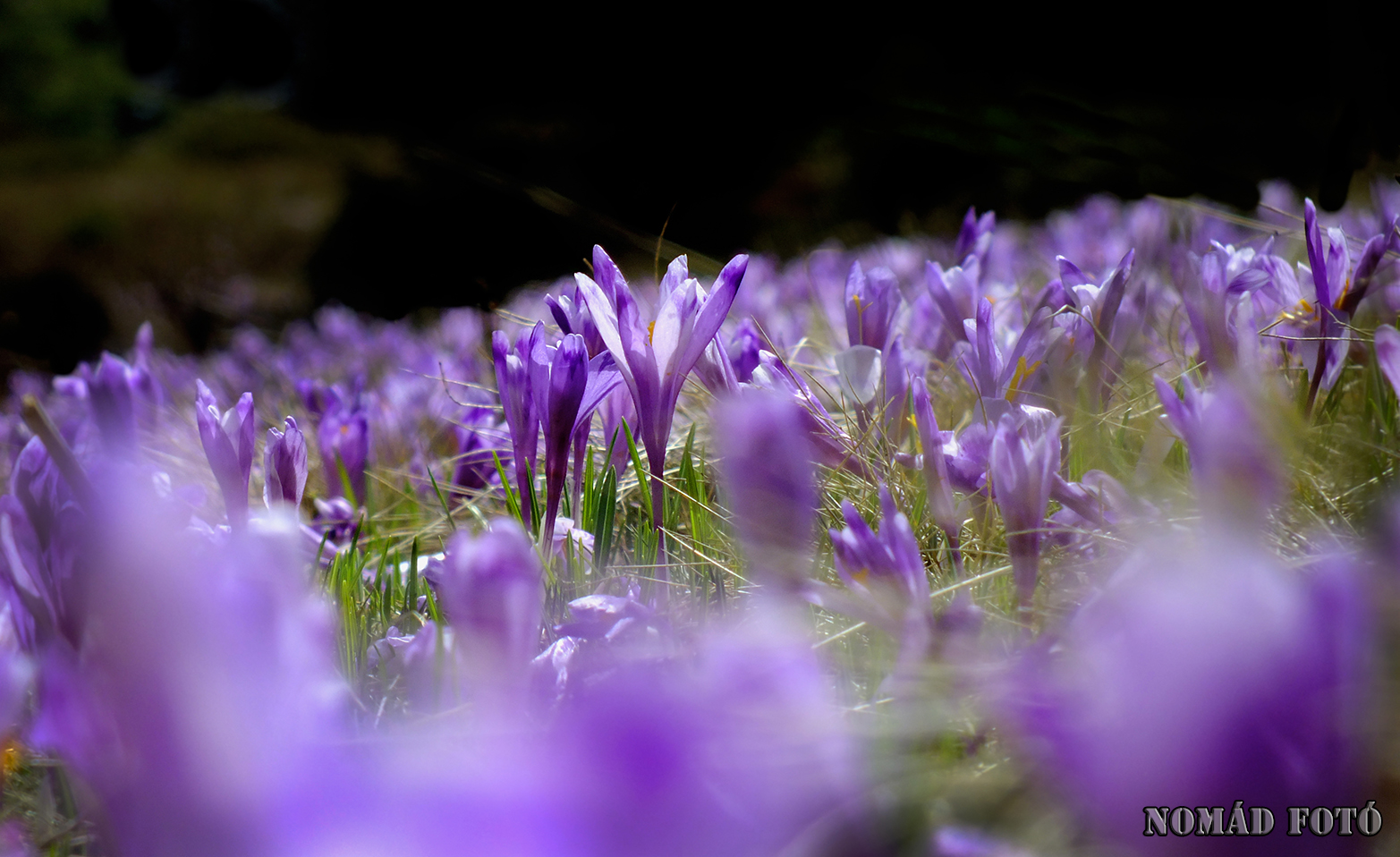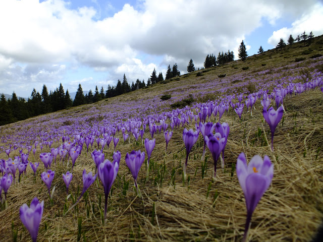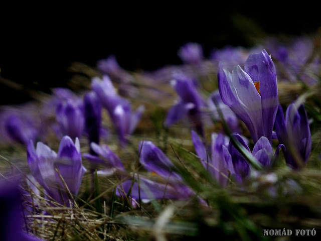 | Krókusz mező. Bár lekéstük a tömeges virágzást, azért még mindig van belőlük bőven. |