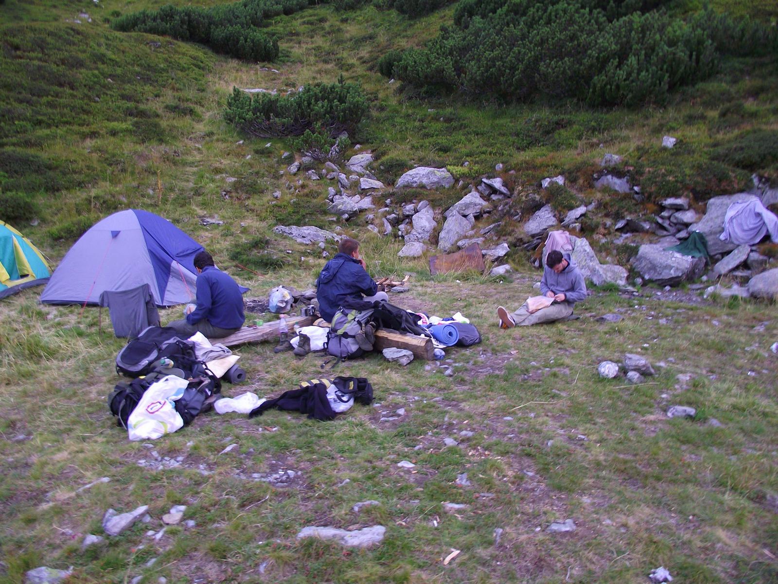 Gyorsan sátrat állítottunk, majd vacsorához láttunk. Ezen a túrán Dórival radikálisan szembehelyezkedtünk a konzervfogyasztással és egyet sem hoztunk, a
