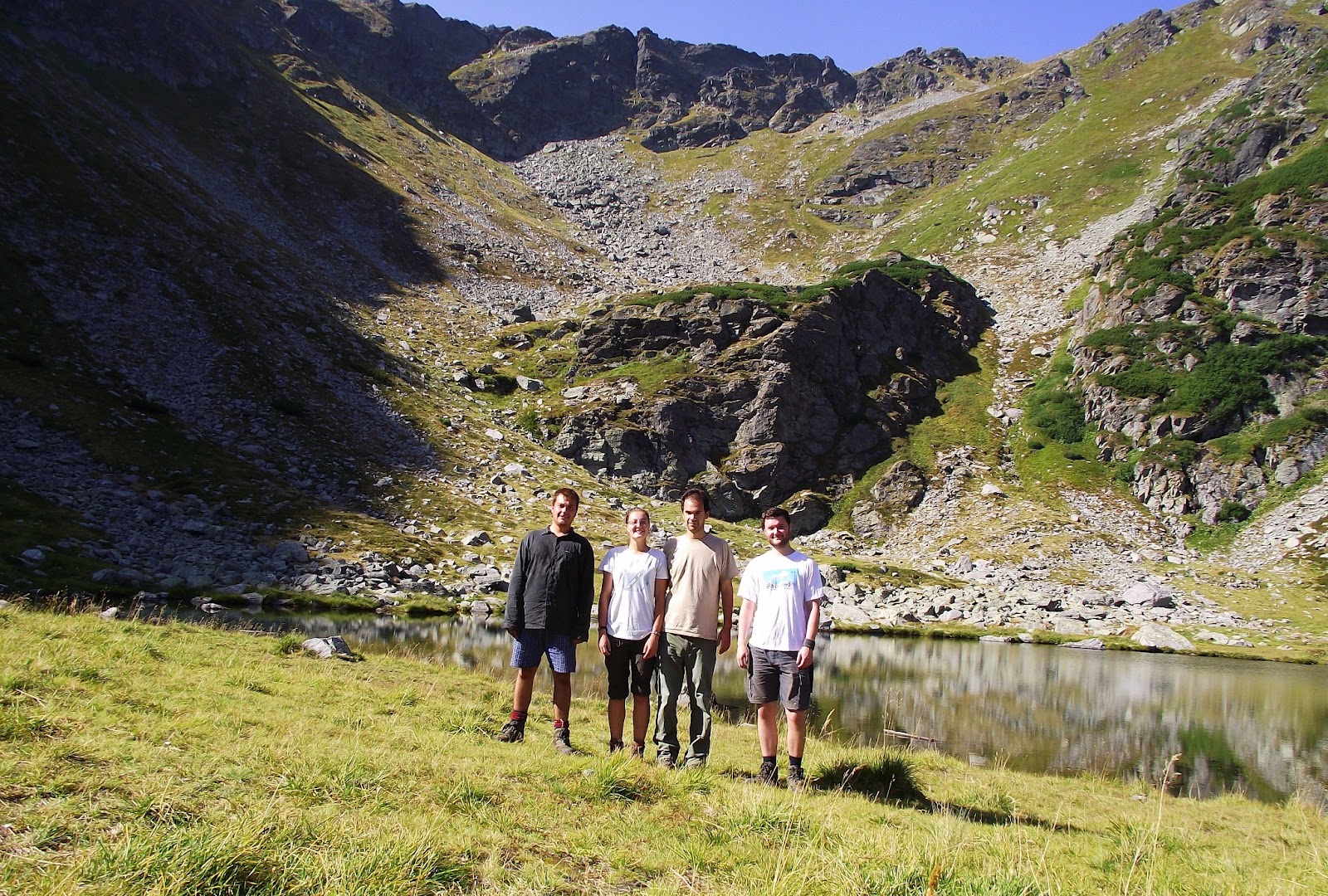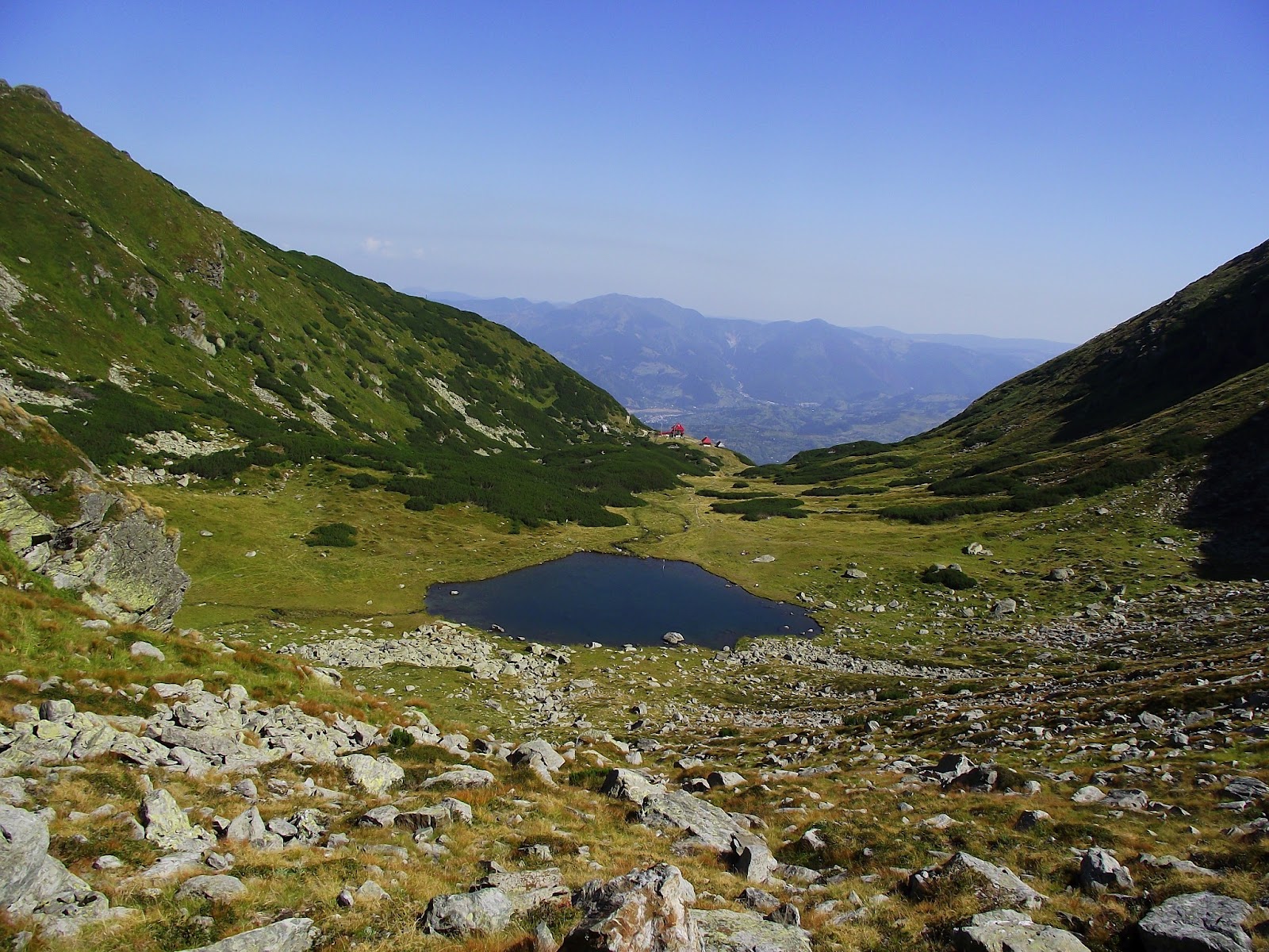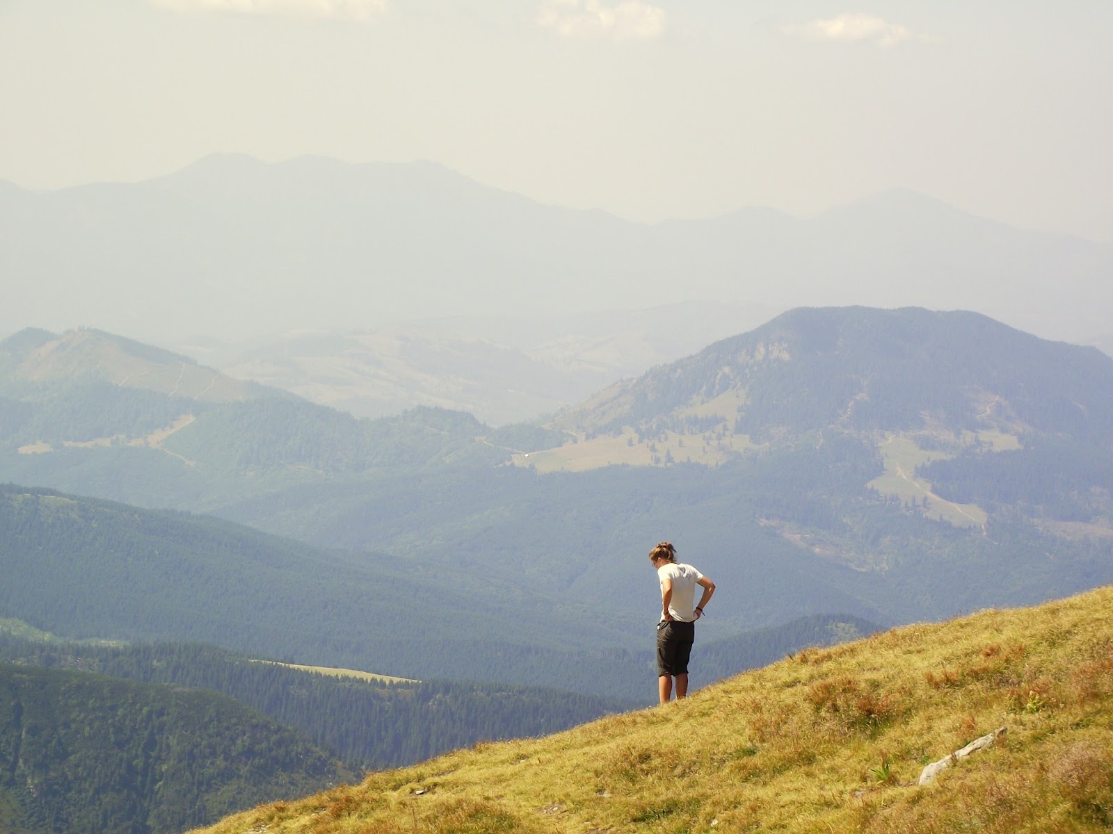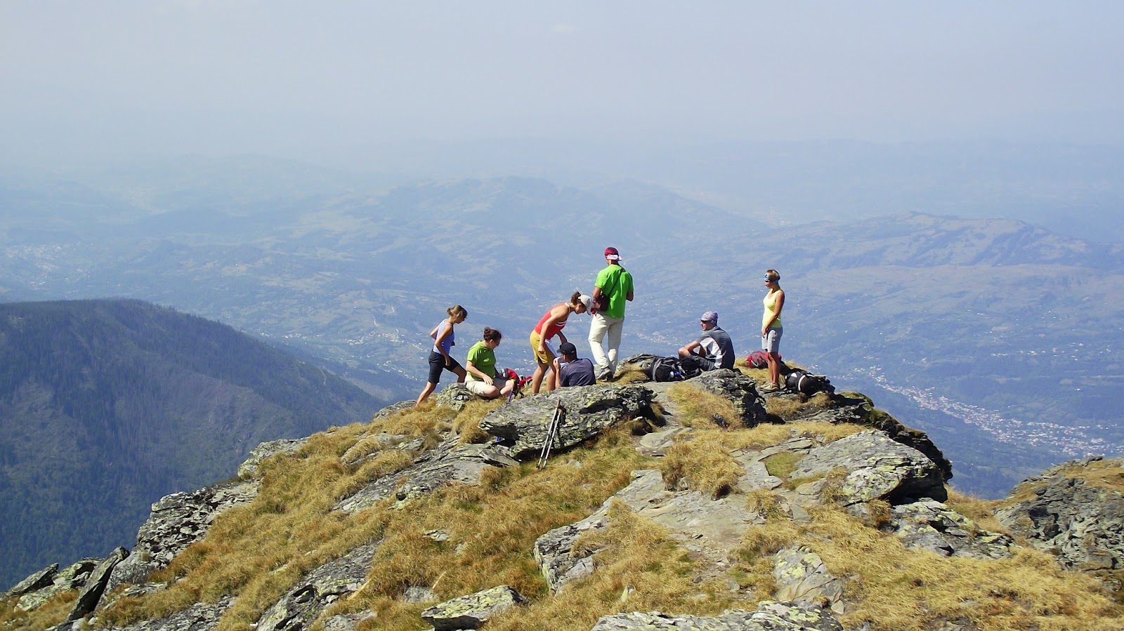Bukuly-tavakat. A Nagy-Bukulyra megint felfelé kellett kapaszkodnunk. Végül úgy döntöttünk, nem másszuk meg ezt a csúcsot, hanem csak megkerüljük, aztán a Nagy- és a Kis-Bukuly közötti nyeregben újra elgondolkodunk a folytatáson. Itt le is heveredtünk kicsit. Éppen arra jött két magyar turista, akik már hallották hírünket a két román sráctól. Mivel ők éppen szemben jöttek szinte ugyanezen az útvonalon, ki tudtuk őket faggatni a folytatásról, köztük olyan fontos kérdésekről, mint sátorozóhelyek, források, pásztorkutyák helyzete. Ők mondták, hogy inkább a távolabbi sátorozóhelyben gondolkodjunk, mert a közelebbi egy kabana (menedékkunyhó, a pásztorok használják, a nyáj is a közelben szokott lenni) mellett van. Források többnyire rendben, viszont a Kis-Bukuly után lesz egy nyáj 4 kutyával. Vettük az adást, ők meg mentek tovább.