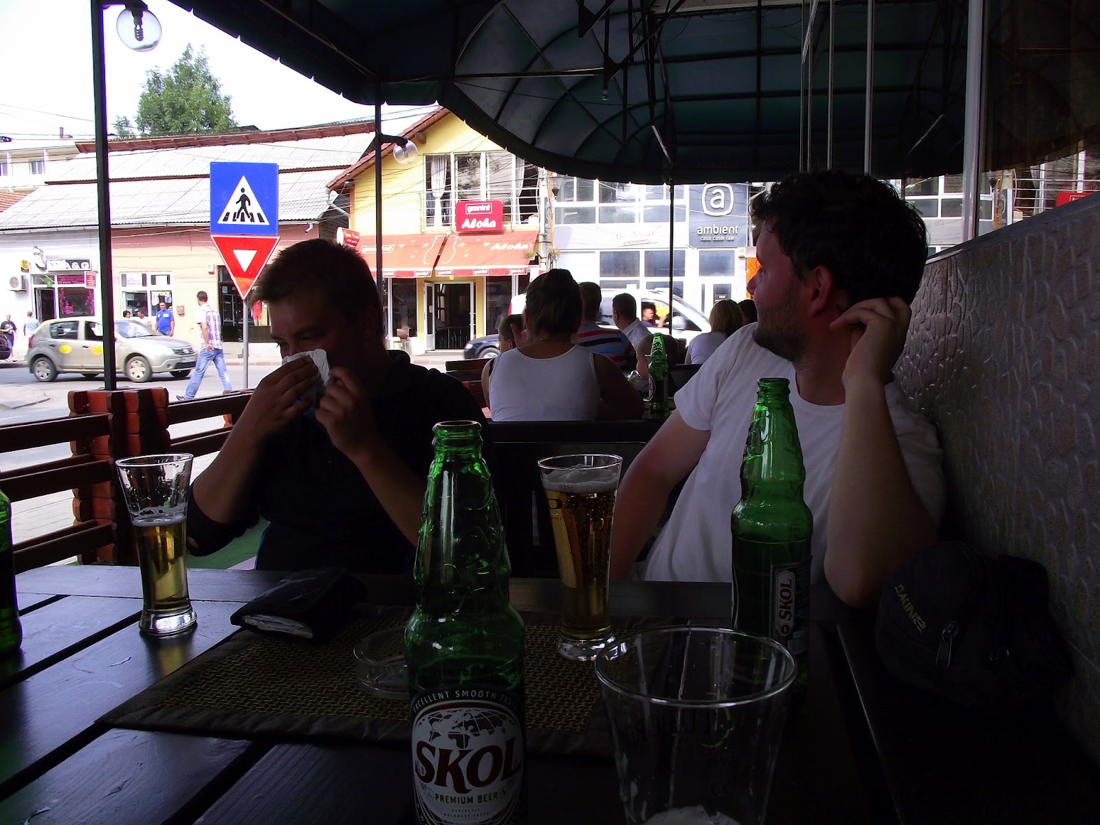 kifejezte), hogy a menü kb. 90%-a nem kérhető, így tulajdonképpen 3-4-féle étek közül válogathattunk, kedvünkre. A tálalás is hagyott maga után kívánnivalót, úgy emlékszem, az árak szintén. Vacsora után még feltöltöttük Lion-raktárainkat a helyi szupermarketből, és nyugovóra tértünk. Éjjel hatalmas vihar jött, zuhogott az eső, dörgött-villámlott, mi pedig áldottuk Andris nevét, aki ennyire pöpecül időzítette a túrát.Másnap korán reggel, hűvös, esős időben indultunk Borsáról Máramarosszigetre busszal. Bő 2 órás lehetett az út, a vége felé heringként összepréselődve vártuk az érkezést. M.m.szigeten volt elvileg elég sok időnk, talán másfél óránk a Szatmárnémetibe vivő buszig, így beültünk az állomás melletti kávézóba. Jól esett beszélgetni és ülni, alig vettük észre, hogy az idő elrepült. 10 perccel indulás előtt kezdtük csak keresni a buszt, amely azonban ekkorra már "megtelt" (?), és a bunkó, arrogáns buszsofőr nem volt hajlandó minket felvenni. (Amúgy határozottan pozitív tapasztalataink voltak a többi sofőrrel.) Ez már önmagában is elég bosszantó és megalázó volt, de a slusszpoén még csak most jött: aznap nem ment több busz Szatmárnémetibe! Meg vonat se. Egy darabig próbáltunk segítséget kérni, elmentünk egy buszpályaudvarra, hátha ők tudnak valamit, menetrendeket böngésztünk, de semmi jel nem utalt arra, hogy úgy el tudnánk jönni M.m.szigetről, hogy még a mai nap folyamán átlépjük a határt. Eszünkbe jutott a pályaudvar mellett az egyik boltban magyar(ul jól beszélő) eladó, akinél érkezésünkkor vásároltunk. Megkérdeztük, hátha tud segíteni, szerencsére tudott - 10 percen belül hívott egy ismerős taxist, aki vállalható áron átvitt minket Szatmárnémetibe. Ott a pályaudvar büféjébe már törzstagokat megszégyenítő magabiztossággal léptünk be, hogy 1-1 üdítő mellett még kihúzzunk 1-2 órát a vonatig.
