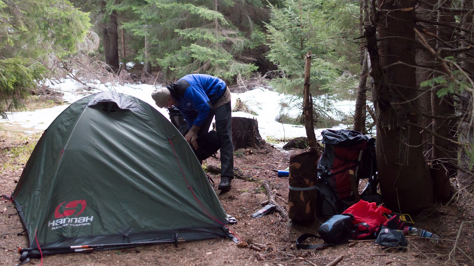 A Köves-hágóba megérkezve nekikezdtünk Ákos sátrának a felállításába, ugyanis az enyémhez sehol se találtam otthon az alumínium rudakat. Szépen szedegettem ki a cuccaimat a zsákomból, amikor vajon mi került elő a zsák legaljából, a hálózsák alól? A sátorrúdjaim... A nap második pofonja olyan váratlanul ért, hogy hangosan nevettem, és a túrán végig ezzel viccelődtem. Pedig bepakolás előtt mindig kiszedek mindent a zsákból, és üres zsákkal kezdek, de ezek olyan jól eltűntek a zsák alján, hogy elkerülték a figyelmemet. Azért abban megegyeztünk, hogy még mindig jobb, mintha egyáltalán nem lenne nálunk sátorrúd!