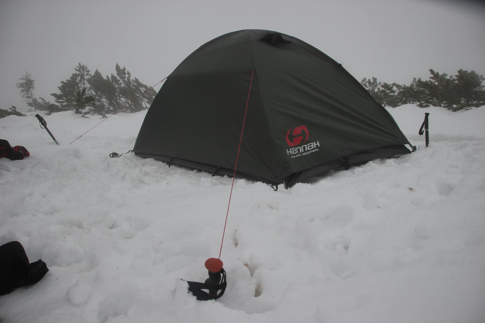 Végül egész jó sátorhelyet kiásva, az időnként felszakadó ködben munkamegosztással dolgozva (egyik ás vagy sátrat állít, másik fényképez) felkészültünk az éjszakázásra.