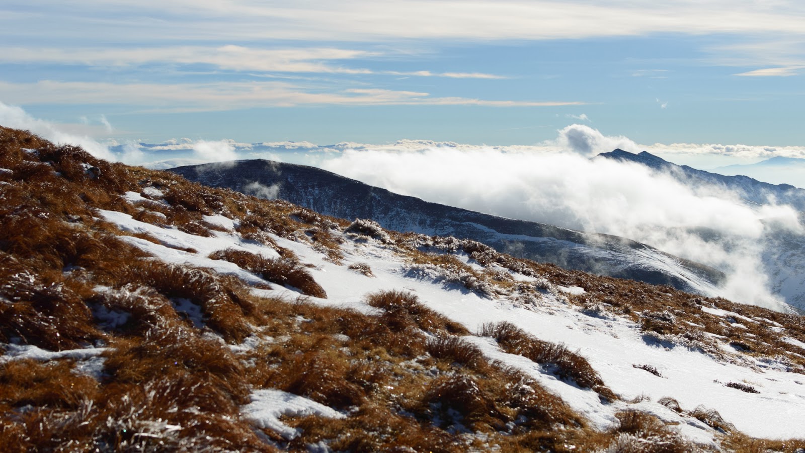 Az utat a kék háromszög jelzésen megkezdve nekivágtunk a sötétnek. A falu szélén, a műútról már letérve, de még a házak között néhány pásztorkutya próbált meggyőzni minket a megállás feleslegességéről, így ruházatunkon csak a faluból egészen kiérve tudtunk könnyíteni. Nem volt hideg, csak pár fokkal lehetett fagypont alatt, az ég felhős volt. A sétát a már ismerős úton folytatva sokáig gond nélkül haladtunk, majd hirtelen esztenák között bukkantunk ki, amik nem voltak elég ismerősek. Volt egy elképzelésem róla, hogy hol vagyunk, de bizonytalan voltam, így Ákos javaslatára letáboroztunk egy nyitott kis ház tornácán illetve szobájában. A döntés helyesnek bizonyult, a pár óra alvás jót tett, és a világosban hamar belőttem azt is, hogy hol vagyunk - nem pont ott, ahol szerettem volna. Az előttünk járók nyomait követve egy útvillát elnézve letértünk a jelzésről pár száz méterrel, de ezt hamar korrigáltunk, és hamarosan felértünk a legelők szintjére, ahol a főgerinc piros sáv jelzése mellett szél és szép kilátás fogadtak bennünket.